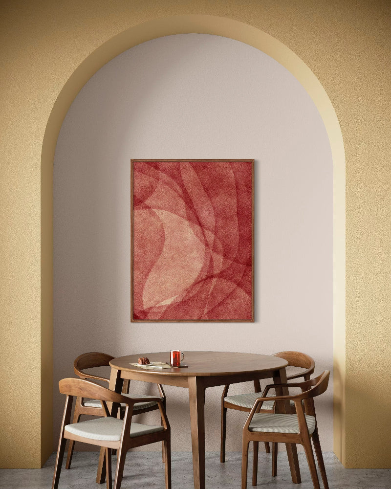 Our abstract artworks blend modern Japanese aesthetics with warm, organic design elements, creating a soothing atmosphere perfect for quiet moments. Each unique print brings the calm elegance of a peaceful retreat into your daily space.